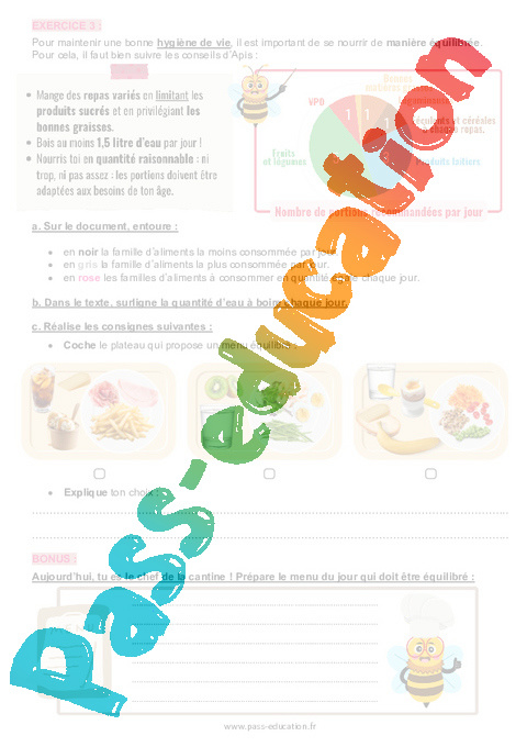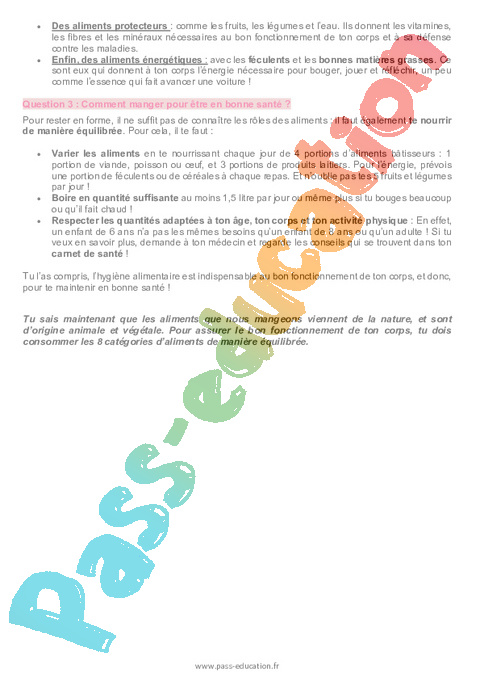 6.1 Correction Hygiène de vie et alimentation : Primaire 3 pdf