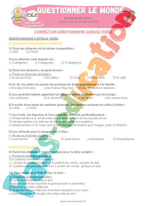 3.1 Correction QCM capsule vidéo Hygiène de vie et alimentation : Primaire 3 pdf