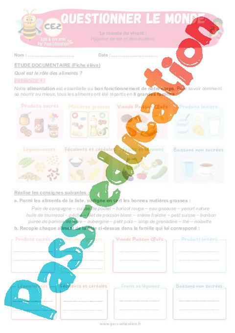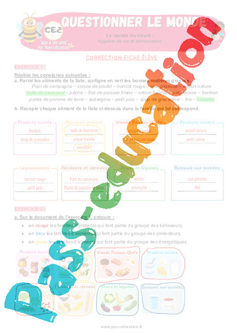 4.1 Correction Fiche Elève Hygiène de vie et alimentation : Primaire 3 pdf
