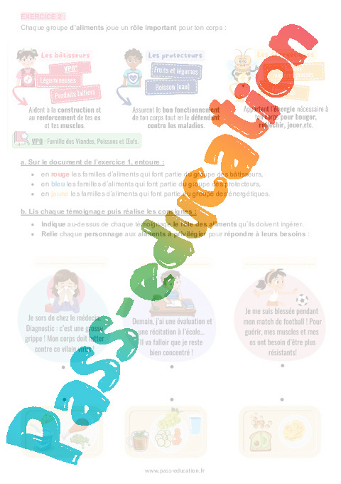 ✔ Fiche élève Documents + exercices « Quel est le rôle des aliments ? »