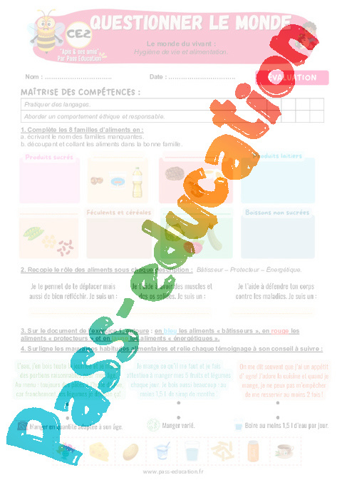 6 Evaluation Hygiène de vie et alimentation : Primaire 3 pdf