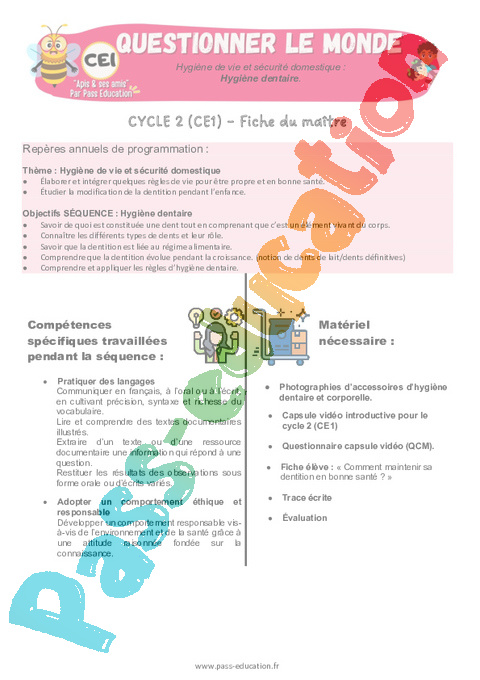 1 Fiche de préparation Hygiène dentaire : Primaire 2 pdf