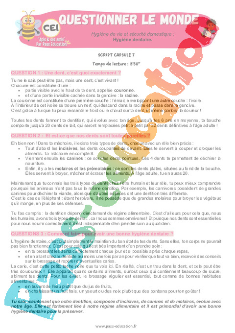 2 Script Hygiène dentaire : Primaire 2 pdf