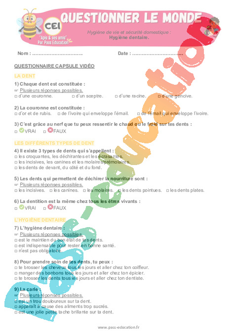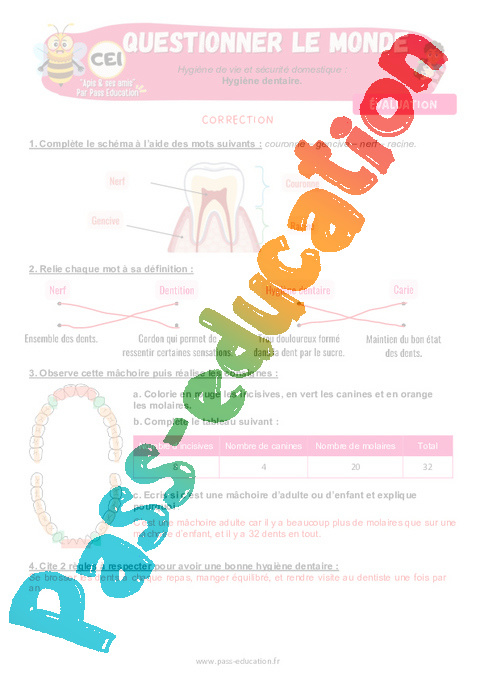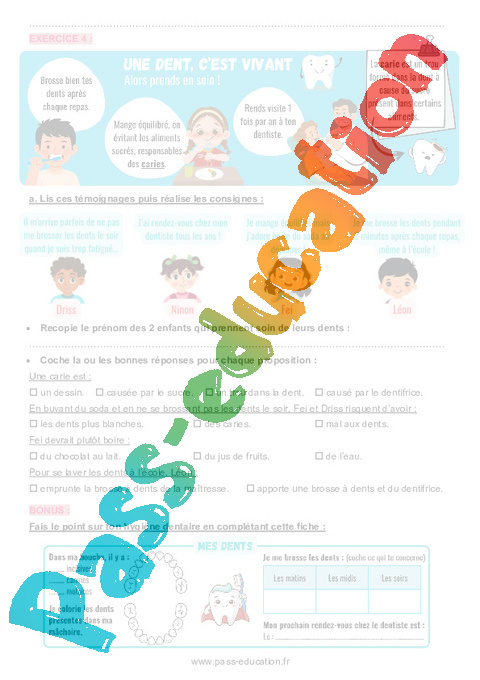 4.1 Correction Fiche Elève Hygiène dentaire : Primaire 2 pdf