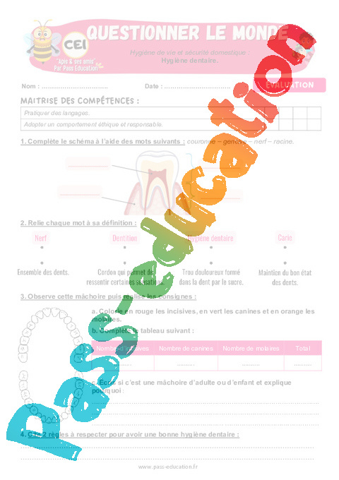 6 Evaluation Hygiène dentaire : Primaire 2 pdf