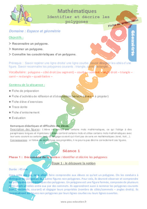 Présentation de la séquence : Primaire 2 Identifier et décrire les polygones pdf