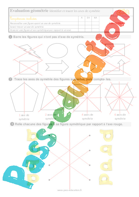 Evaluation Correction : Primaire 3 sur identifier et tracer des axes de symétrie pdf
