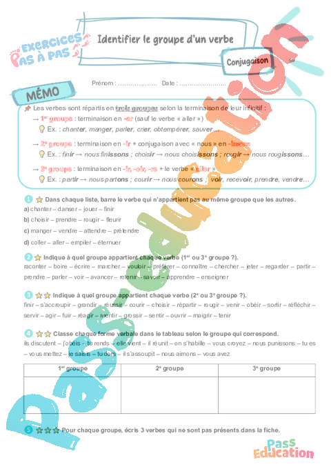 Correction Identifier le groupe d’un verbe : Primaire 5 – Exercices Pas à Pas pdf