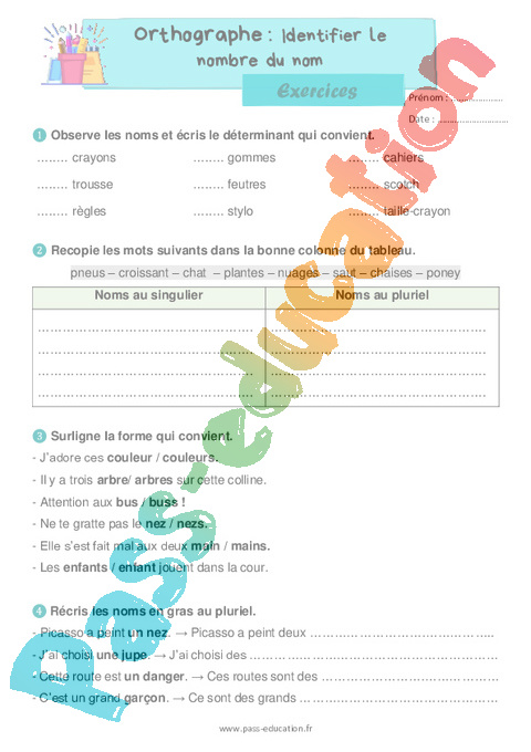 Exercices : Primaire 2 Identifier le nombre du nom pdf