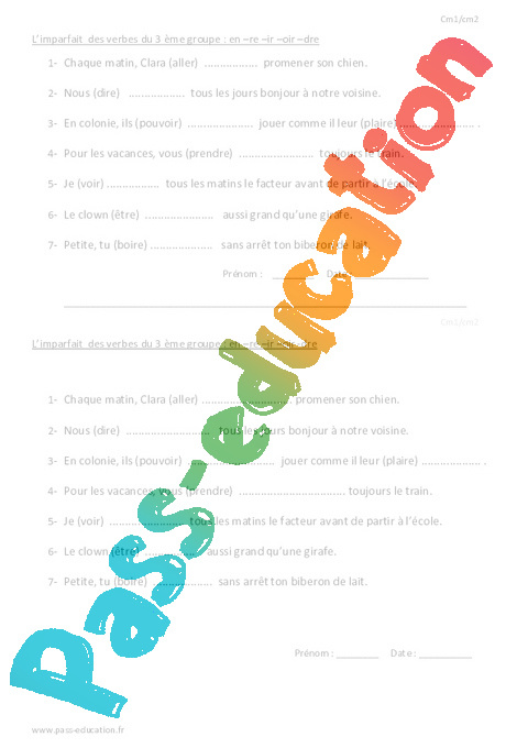 Imparfait de l’indicatif du 3 ème groupe : Primaire 4 - Entrainement rtf