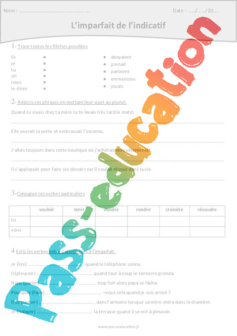 : Primaire 4 – Exercices corrigés – Fiches à imprimer sur l’imparfait