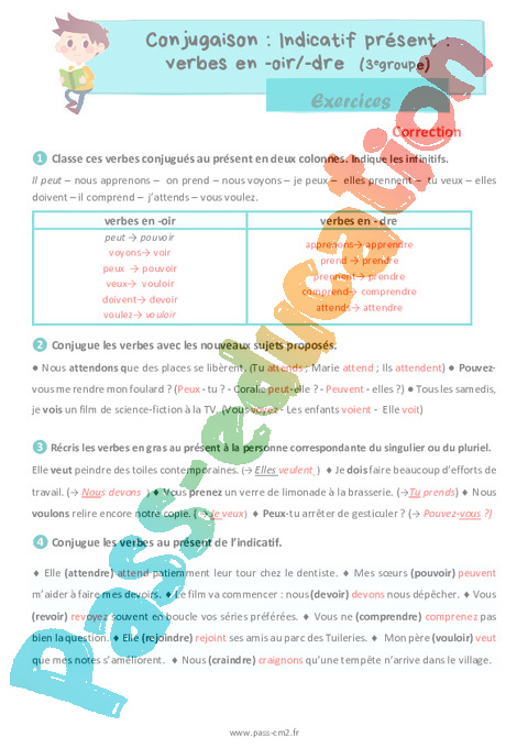 Exercices Correction : Primaire 5 Indicatif présent verbes en -oir-dre (3e groupe) pdf