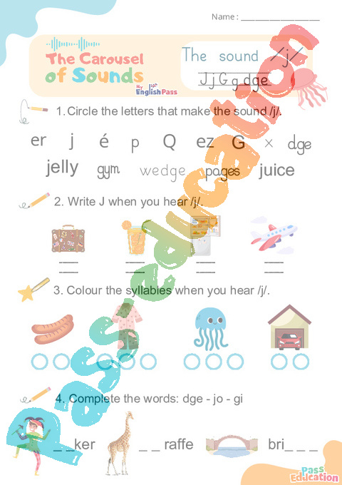 Carousel of Sounds : Maternelle 2 Primaire 1, 2, 3, 4, 5 – Vidéo interactive + Fiche sur le son : /j/ j g ge dge.