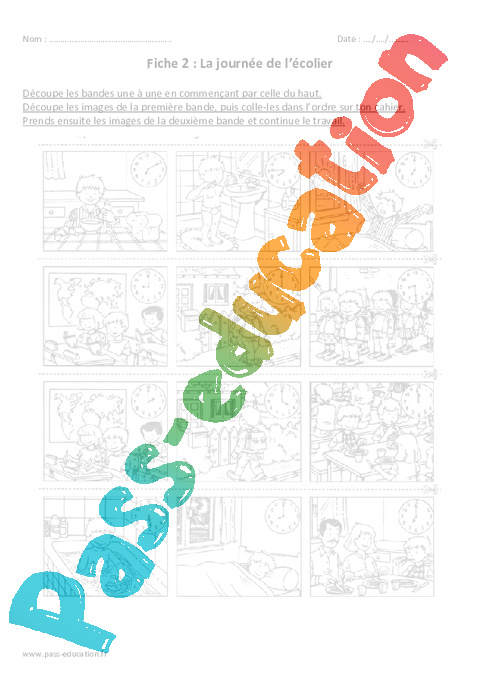 Découpe les images de la première bande, puis colle-les dans l’ordre sur ton cahier.