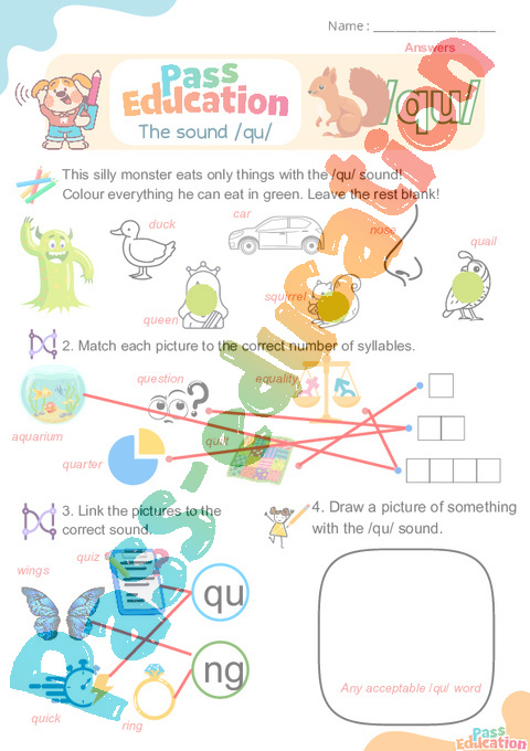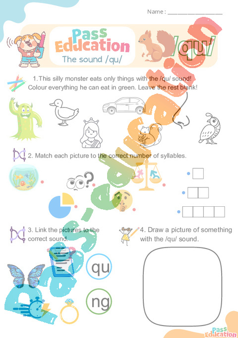 qu Phonics worksheets pdf