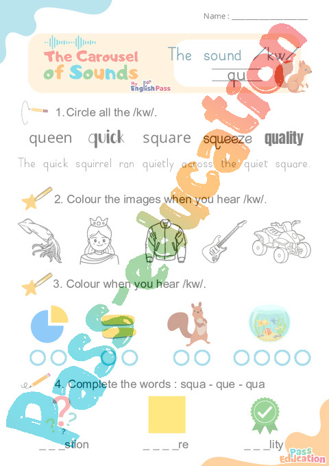 Carousel of Sounds : Maternelle 2 Primaire 1, 2, 3, 4, 5 – Vidéo interactive + Fiche sur le son : /kw/ qu.