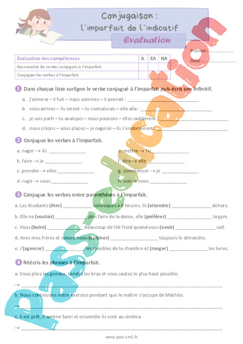 Evaluation : Primaire 4 l’imparfait de l’indicatif pdf