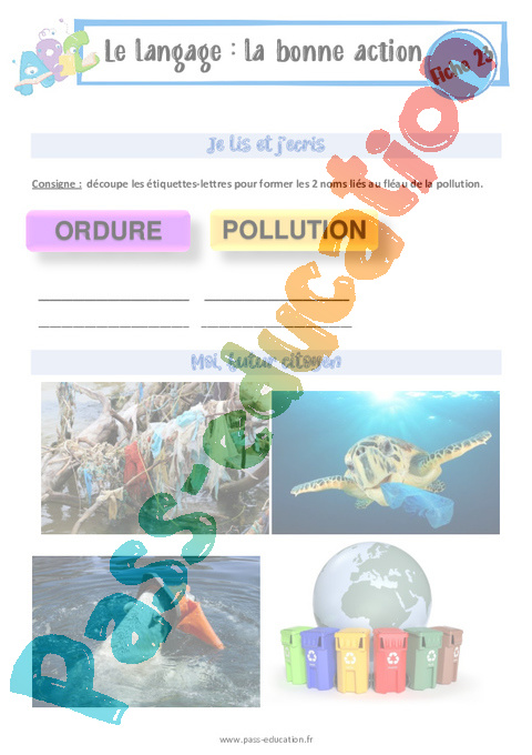 Aujourd’hui, vos élèves vont découvrir les noms de ORDURE et POLLUTION.