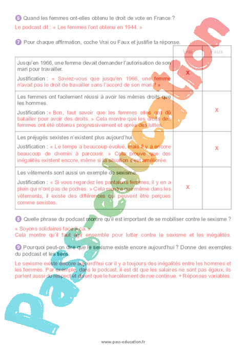 ❾ Pourquoi peut-on dire que le sexisme existe encore aujourd’hui ? Donne des exemples du podcast et les tiens.