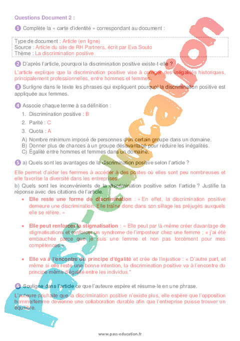 Correction Synthèse Partie 2 La discrimination : Secondaire 2 pdf