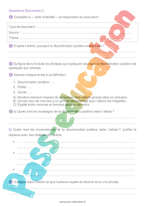 ❸ Que signifie « discriminante » dans l’expression « attitude discriminante fondée sur le sexe » ? En t’aidant du document, résume-le avec tes mots.
