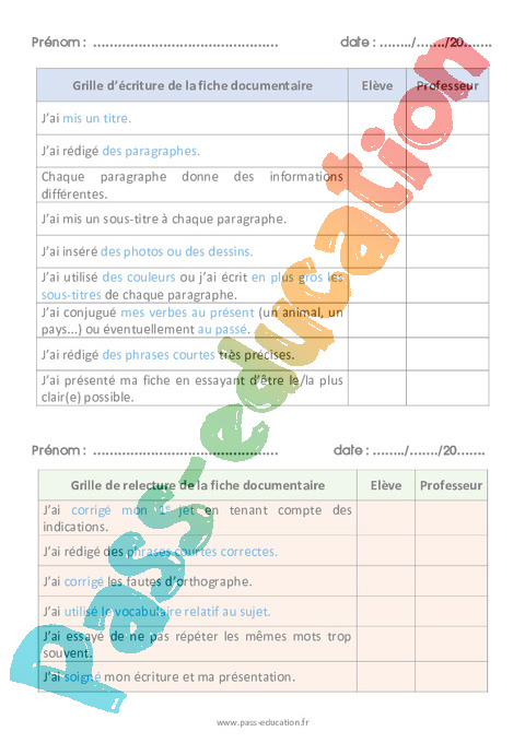 2 Grille d’écriture : Primaire 2, 3 La fiche documentaire pdf