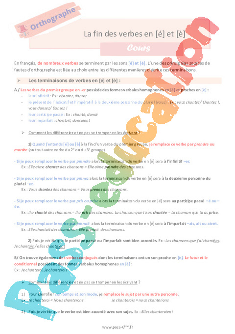 Leçon sur la fin des verbes en [é] et [è] en 6ème.
