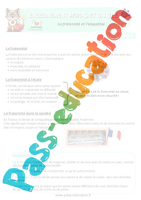 Leçon à imprimer – La fraternité et l’empathie : Primaire 4 – EMC Education morale et civique.