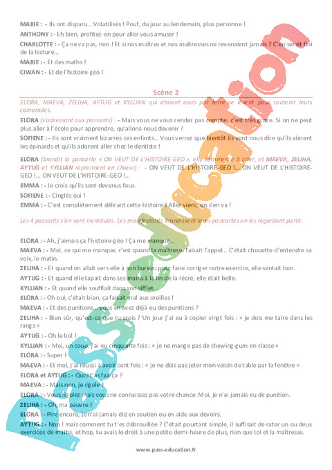 CHARLOTTE (à ANTHONY) : – Mais c’est très grave, vous n’écoutez jamais les infos ? Toutes les écoles sont fermées et on ne trouve plus les professeurs !