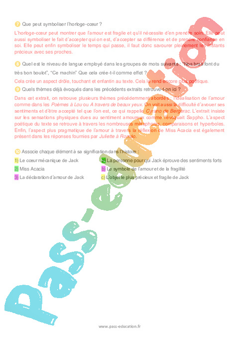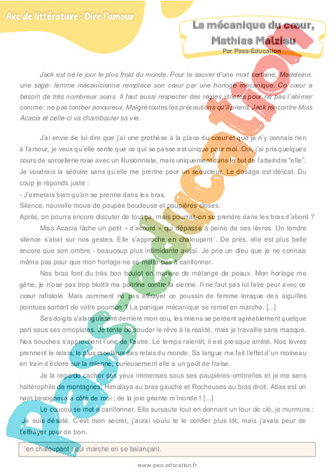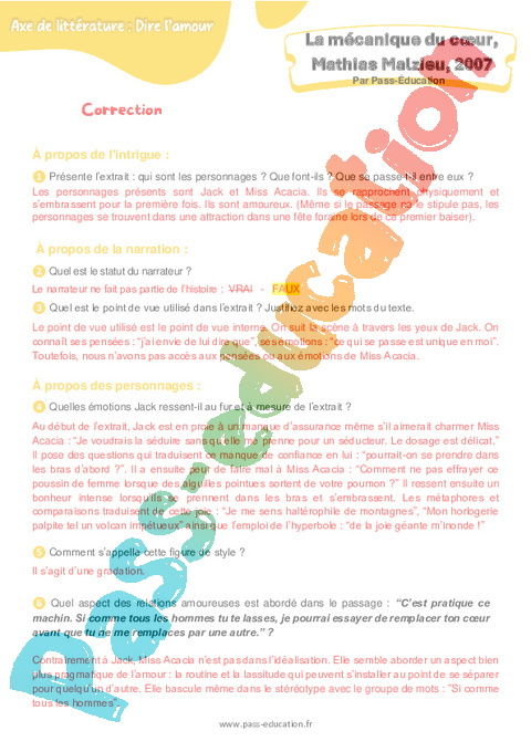 Correction Questionnaire : Secondaire 2 La mécanique du cœur (Mathias Malzieu) pdf