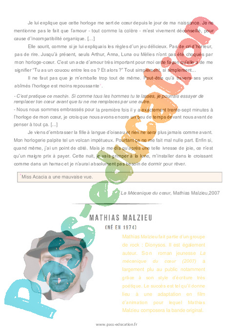 Littérature : Secondaire 2 La mécanique du cœur (Mathias Malzieu) rtf