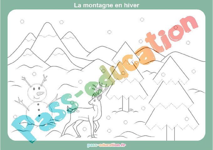 Les graphismes ludiques de Pass Education en : Maternelle 1, 2 sur : La montagne en hiver.
