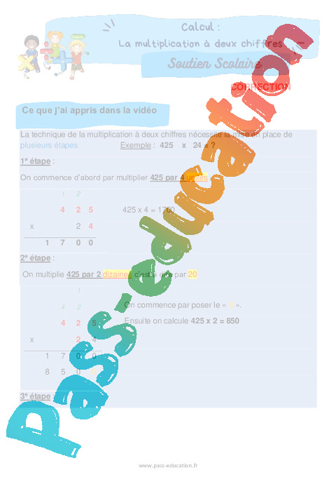 La multiplication à deux chiffres : Primaire 4 – Soutien scolaire Correction pdf