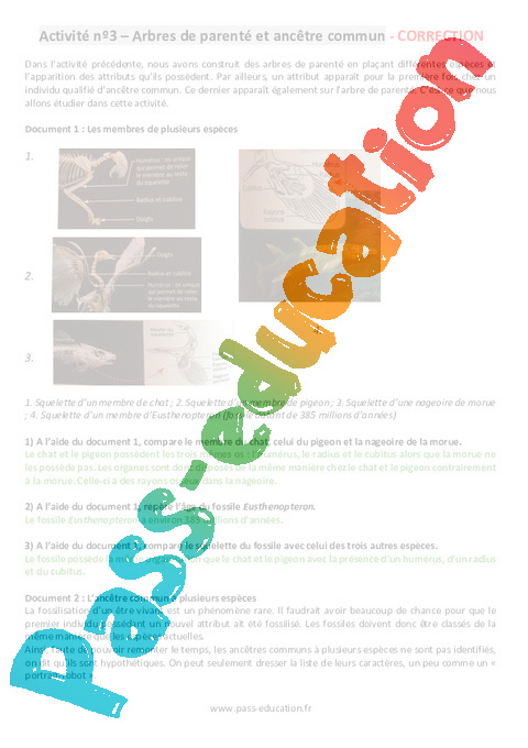 Activité n°3 - Arbres de parenté et ancêtre commun Correction pdf