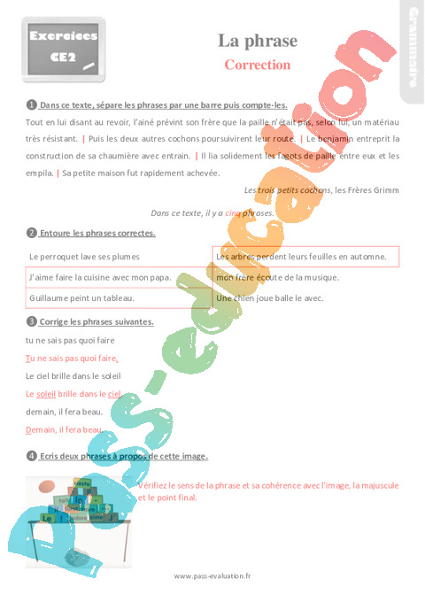 Exercices – La phrase : Primaire 3 – Correction pdf