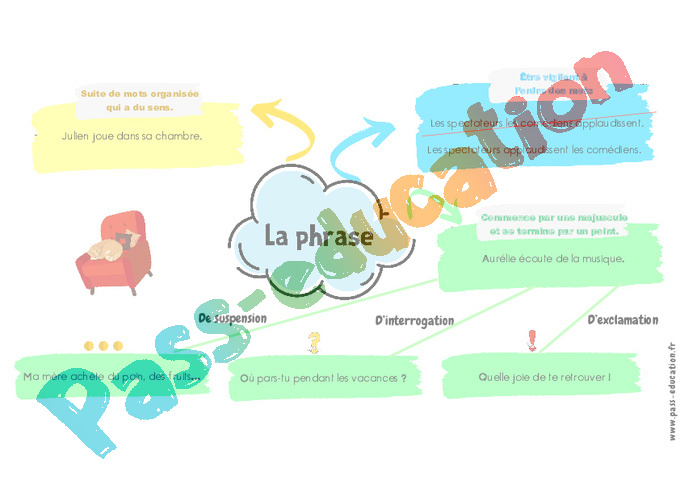 Cette carte mentale va permettre à l’aide de mots clés et d’associations d’idées d’avoir une vision synthétique sur la notion à mémoriser « La phrase ».