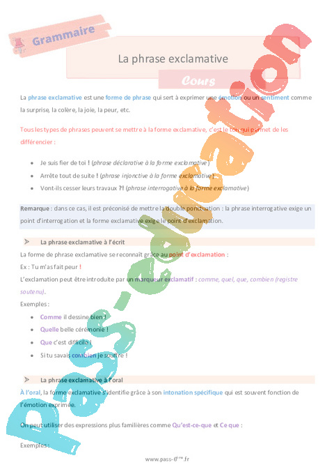 Cours de grammaire sur la phrase exclamative en 6ème.