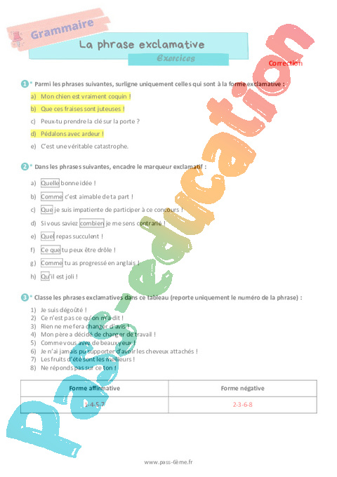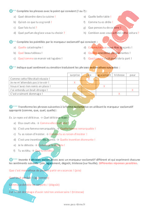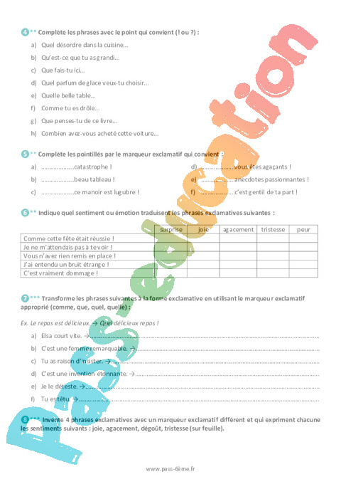 Exercices La phrase exclamative 6ème pdf