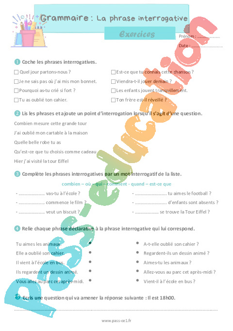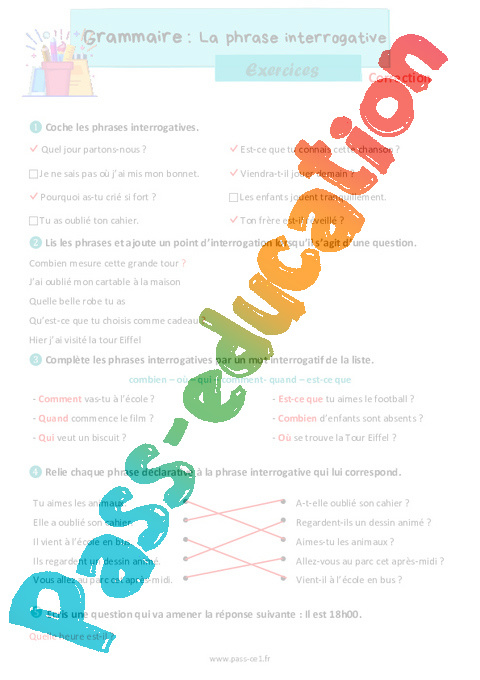 Correction Exercices La phrase interrogative : Primaire 2 rtf