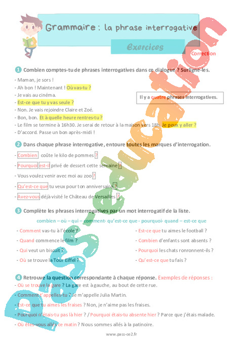 Correction Exercices La phrase interrogative : Primaire 3 pdf