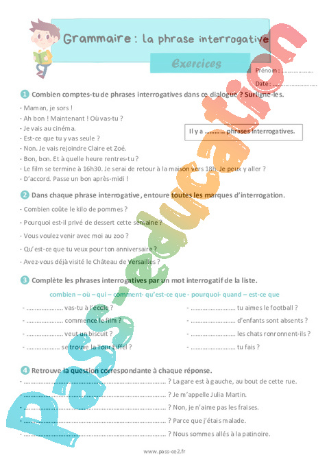 Exercices : Primaire 3 La phrase interrogative pdf