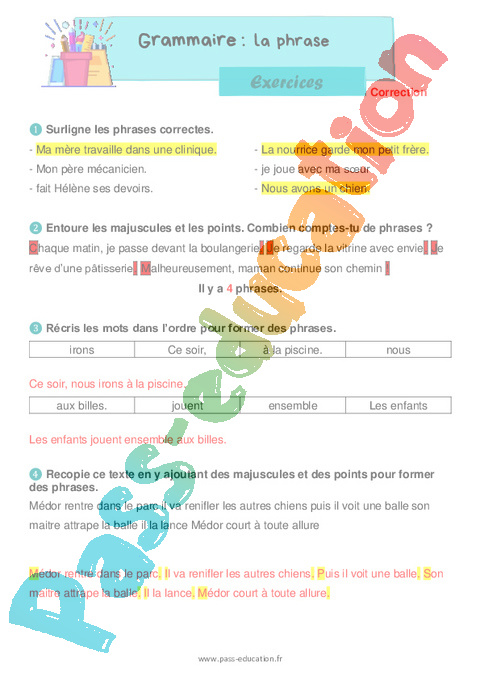 Exercices Correction : Primaire 2 La phrase pdf