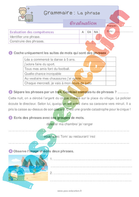 Evaluation : Primaire 2 La phrase pdf