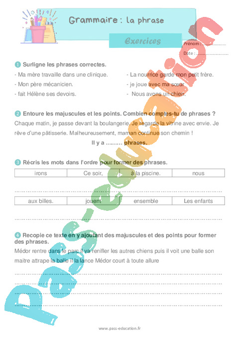 Exercices : Primaire 2 La phrase pdf