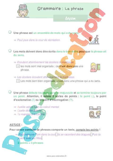 Leçon : Primaire 2 La phrase pdf