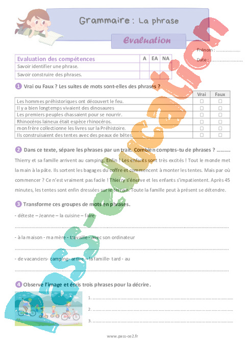 La phrase - Évaluation grammaire pour la Primaire 3 pdf