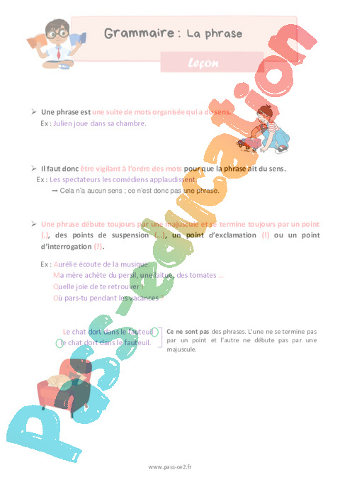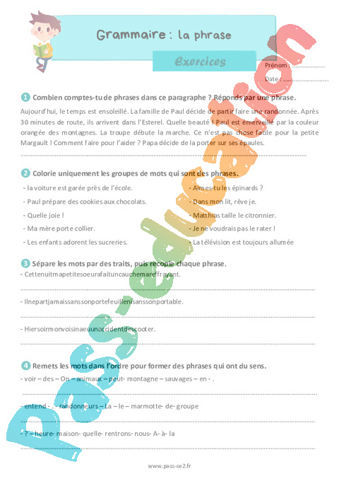 La phrase - Exercices grammaire pour la Primaire 3 pdf