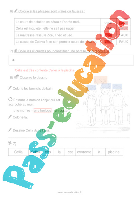 La piscine : Primaire 1, 2 – Mes premiers pas en lecture Correction pdf