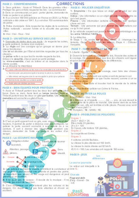Correction La police – Cahier de vacances : Primaire 4, 5, 6 rtf
