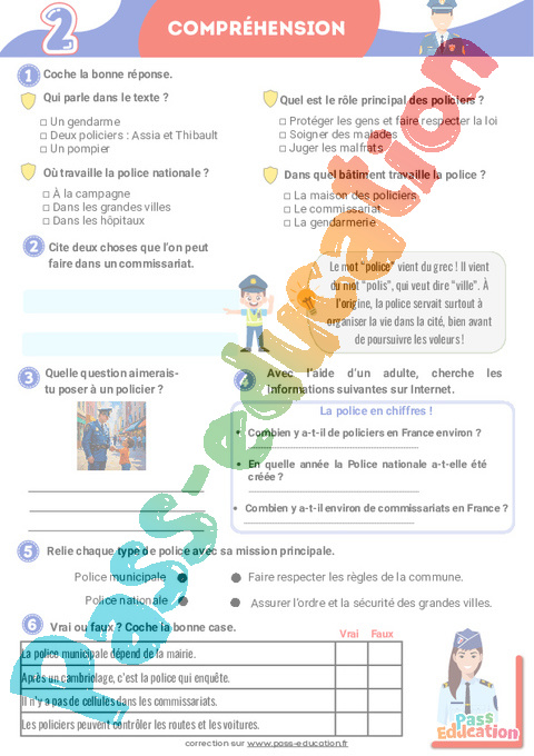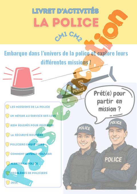Cahier de vacances à imprimer : La police.